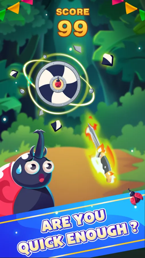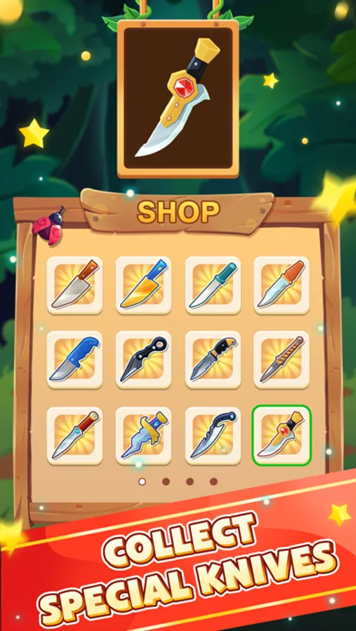 Toss knives at the target boards to earn points. Hit and kill bugs to collect them as currency that can be used to unlock exclusive knives and boards!