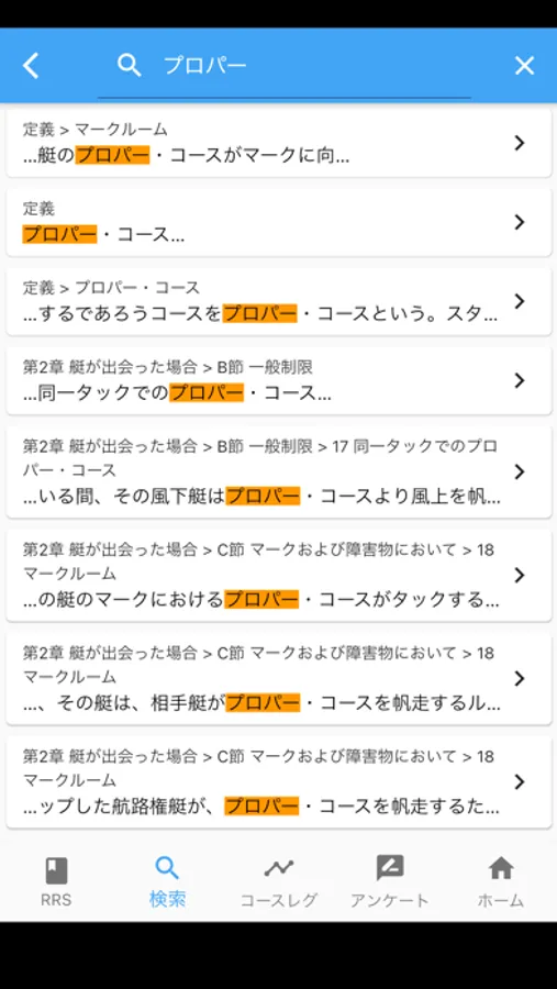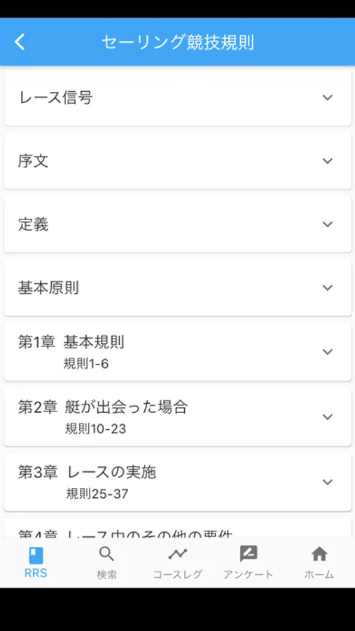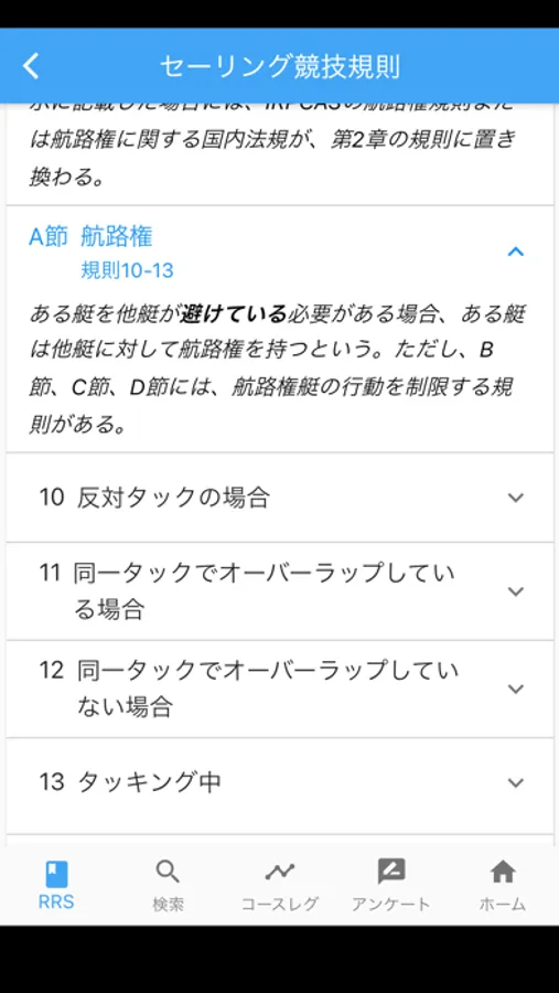 ・コース・レースを楽しむセーラーは、コースの各場面で使われることの多い規則が抜き出されているので、必要な規則をすぐに閲覧することができます。