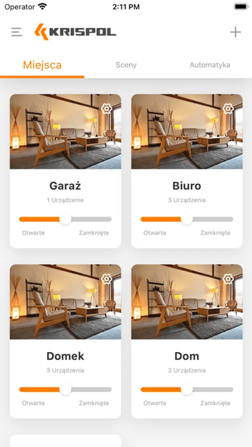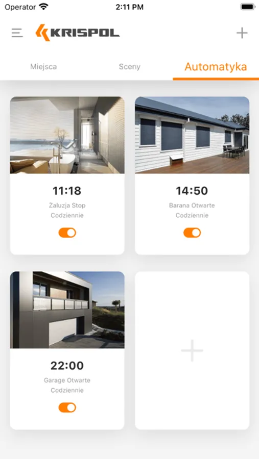 The "myKRISPOL" application enables a more free control of motorized roller shutters, external blinds and garage doors with a smartphone. Before use, set up an account in the "myKRISPOL" application, with Wi-Fi Hub "STARCUS CONNECTOR" or Wi-Fi module "STARCUS GATE CONNECTOR"