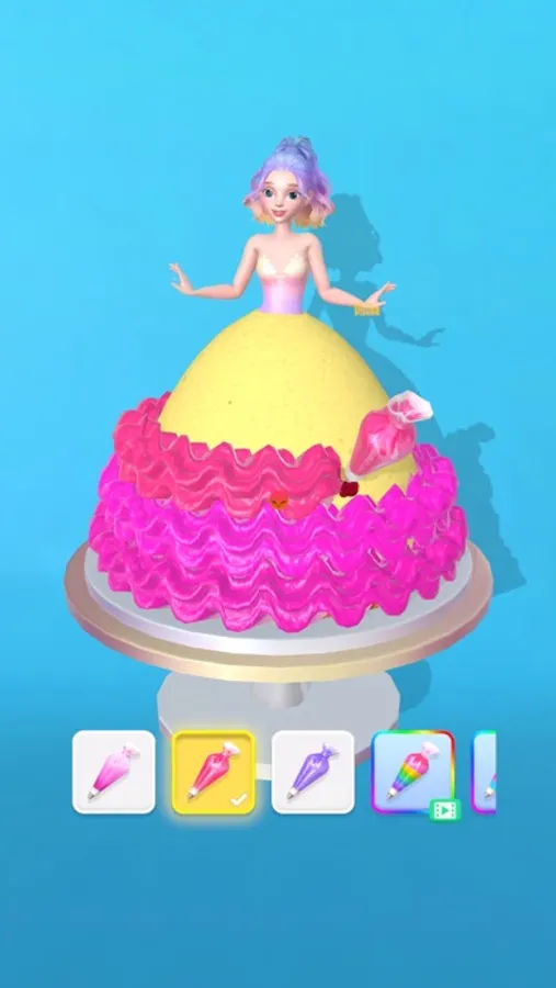 The dress will spin around and you need to pipe icing around. It’s that simple and relaxing!