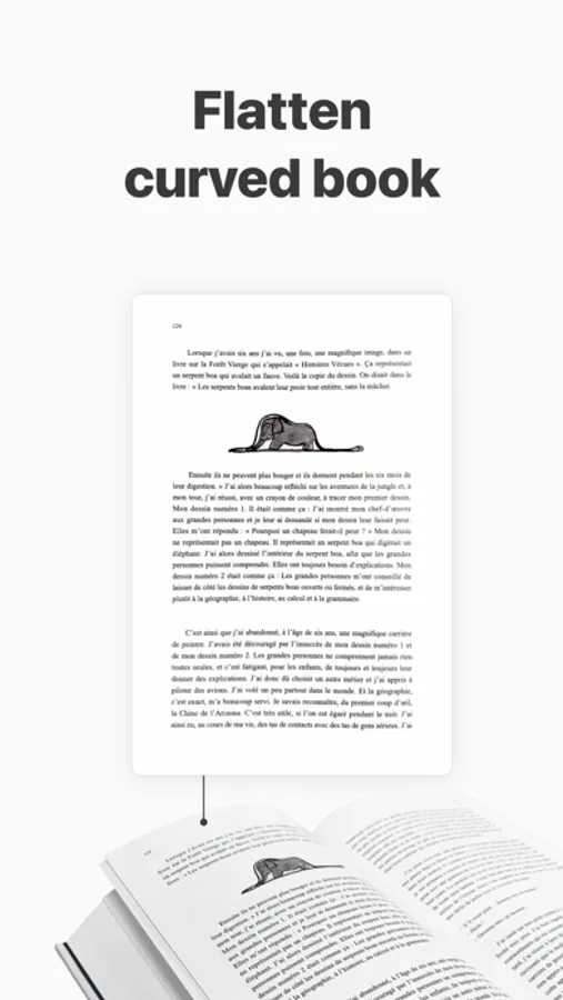 It automatically straightens the curved surface of book pages. vFlat Scans as if they were captured with a professional book scanner, without having to taking pieces of the book.