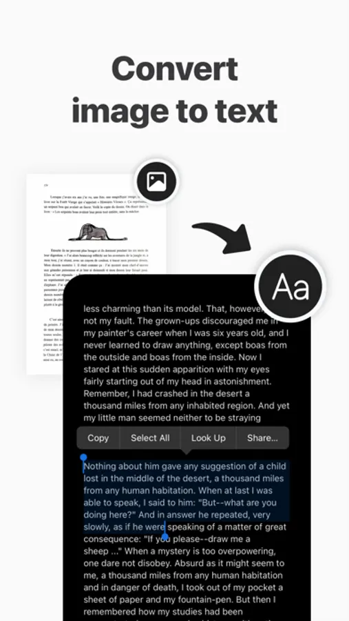 It converts scanned images to text for free through text recognition. You can copy the converted text and easily share it with friends or colleagues.