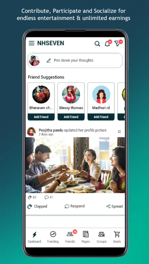And It is an extremely user-friendly application. NH7 is an amalgamation of multiple social media features under one roof, that pays the user for every activity.