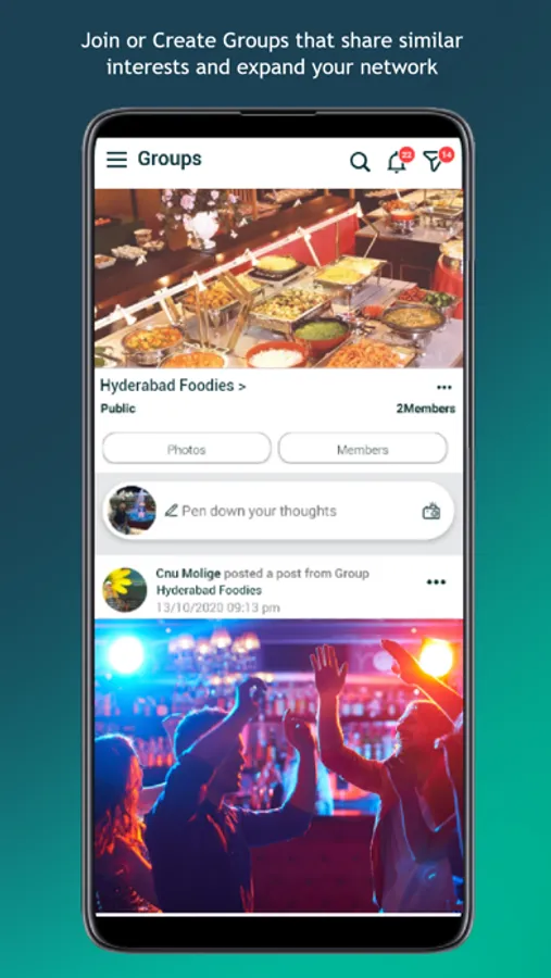 Users can create, join, organize a group based on similar interests or for a specific purpose; a typical group can consist of Social cause or Business interests.
