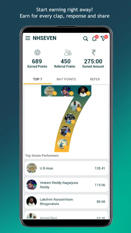 2. REFER and EARN: Earn money by referring NHSEVEN to your closed ones. Referrer will get rewarded once the referee (your friend) complete their registration and updates his profile.