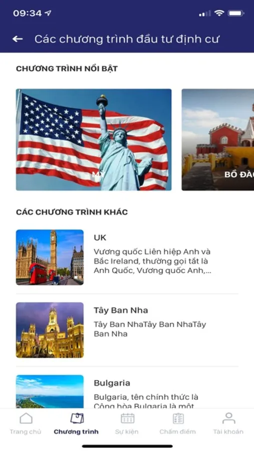 - Người dùng xem được chi tiết các chương trình đầu tư định cư tốt nhất trên thế giới