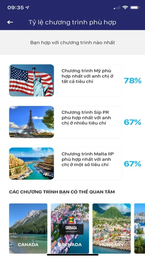- Người dùng tự chấm điểm xem mình phù hợp với chương trình đầu tư định cư nào