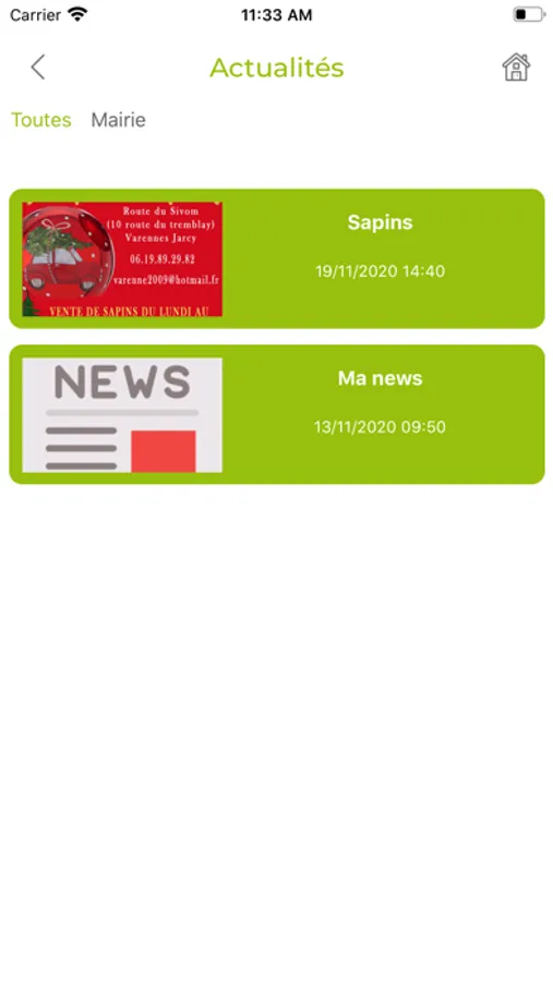L'application permet de consulter des actualités, les informations pratiques de la commune.