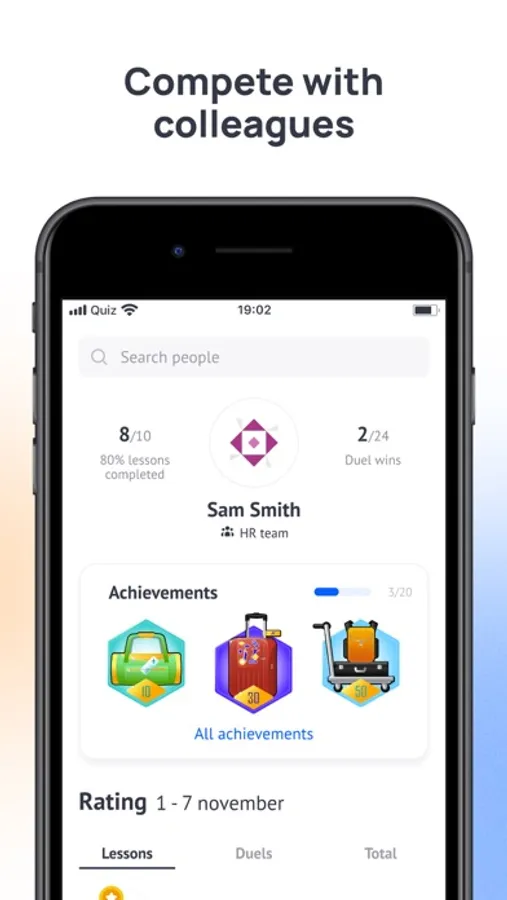 - Tournaments and team competitions show who's the smartest in the company and prepare participants for final tests stress-free.
