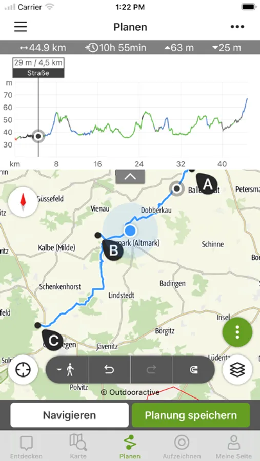 Wenn du eine Rad-, Wander- oder Laufstrecke aufzeichnest, kannst du dein Workout in Apple Health speichern. Daten aus HealthKit werden nicht für Marketing oder Werbezwecke genutzt.