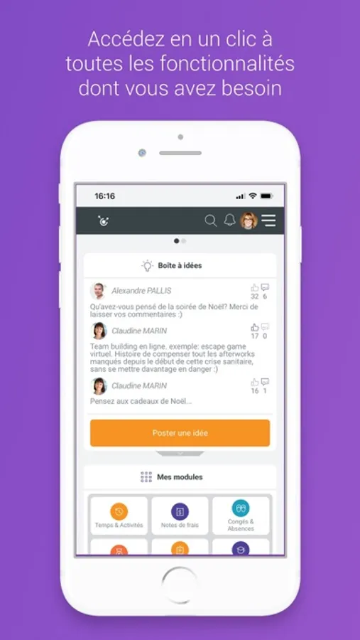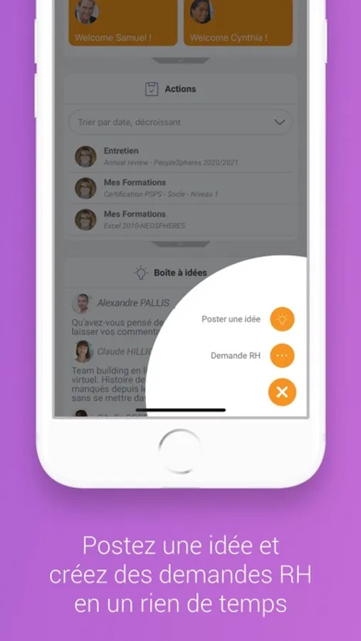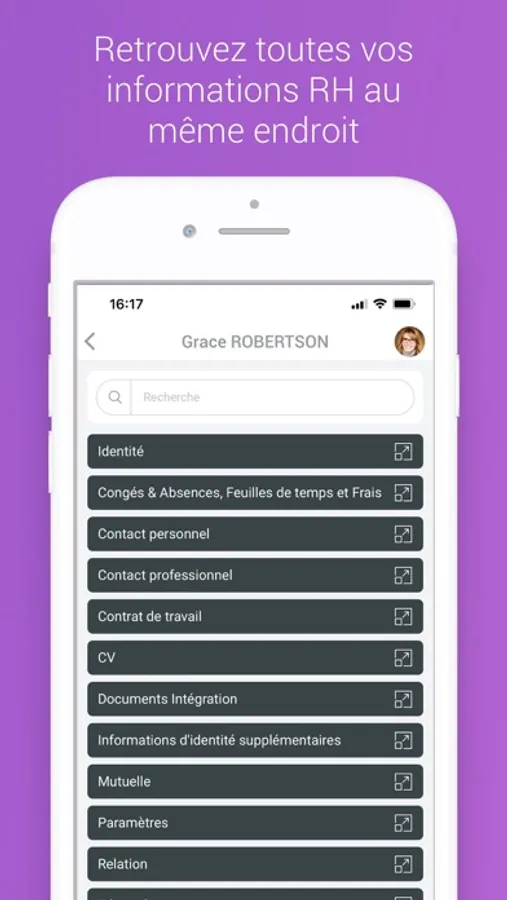 Thanks to our secure and unified mobile access, receive notifications, access your profile, consult admin documents, and manage leave, expenses and all HR requests from one single app.