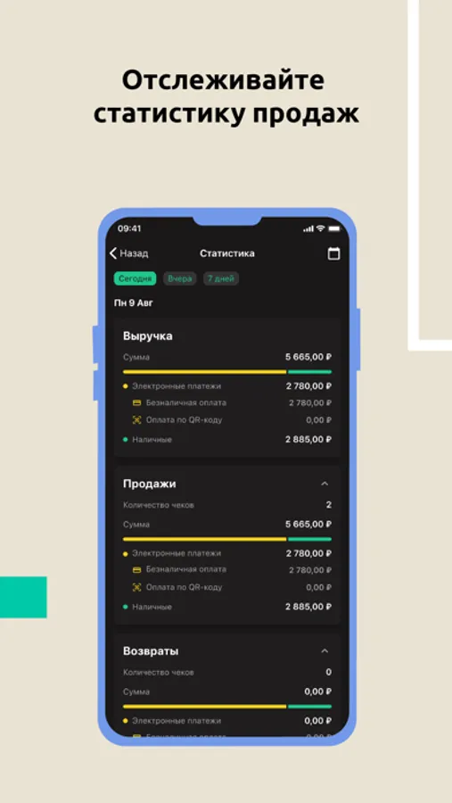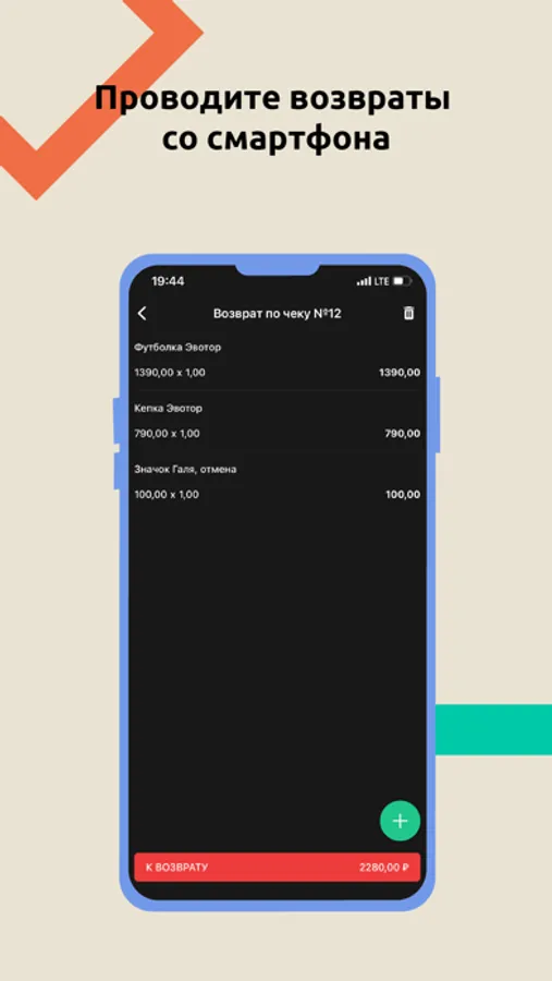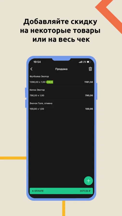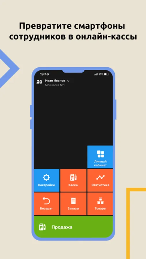 Приложение «Мобильный кассир» превращает смартфон в кассу. Вы сможете оформлять продажи и принимать оплату смартфоном в любой точке магазина или на выезде.
