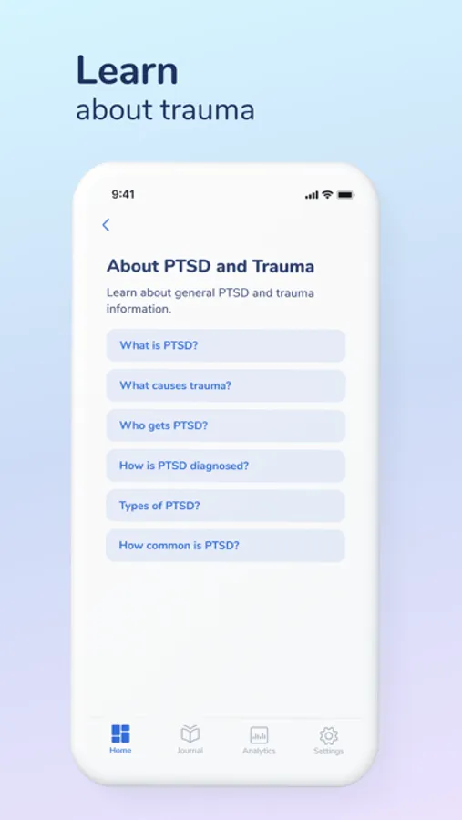 Mira is a self-help app for people with trauma and post-traumatic stress disorder (PTSD). To help you manage your trauma symptoms, Mira is equipped with grounding exercises, trigger and symptom tracking, analytics to record your progress, emergency hotlines, resources and more.