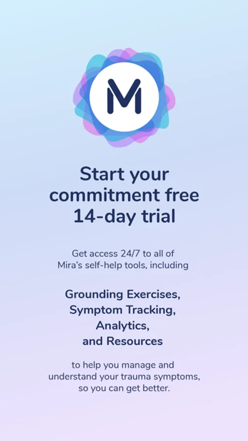 If, after the free trial, you do not wish to make a monthly or annual commitment, you will still have free access to limited features, including four of Mira’s grounding exercises, the journal and the resources module. Always free, for everyone.