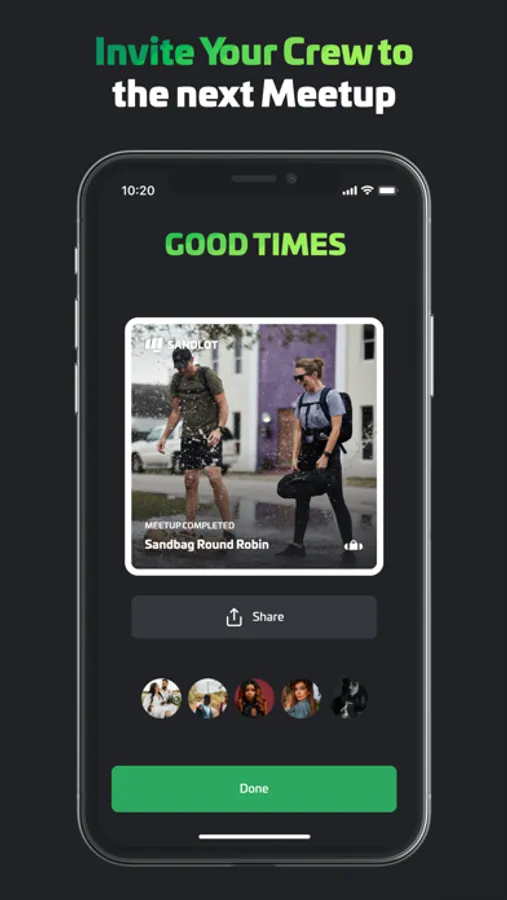 From one-time to recurring, you pick the date, time, place, and workout. Then just invite your Friends or your Training Clients.