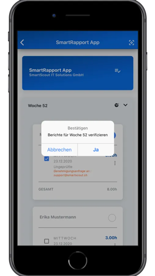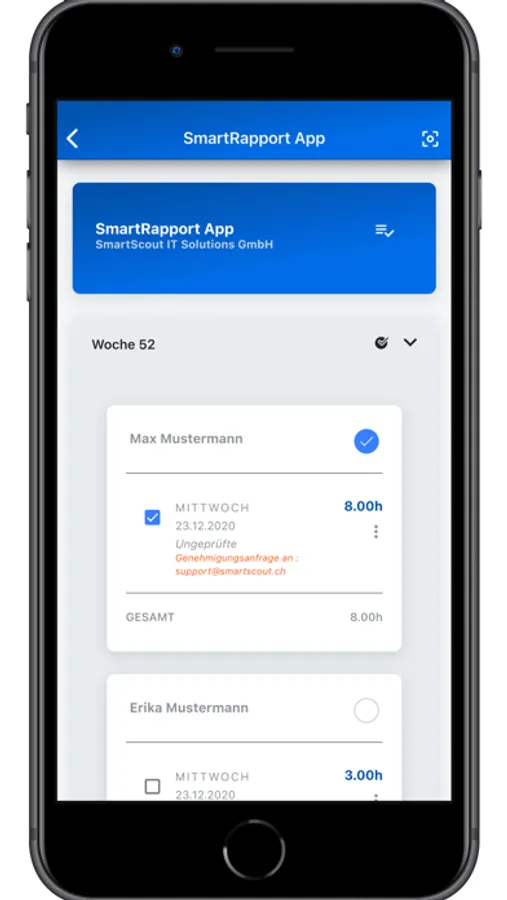 * Die volle Kontrolle, in einer einfachen Darstellung haben Sie alle aktuellen und abgeschlossenen Rapporte im Überblick.