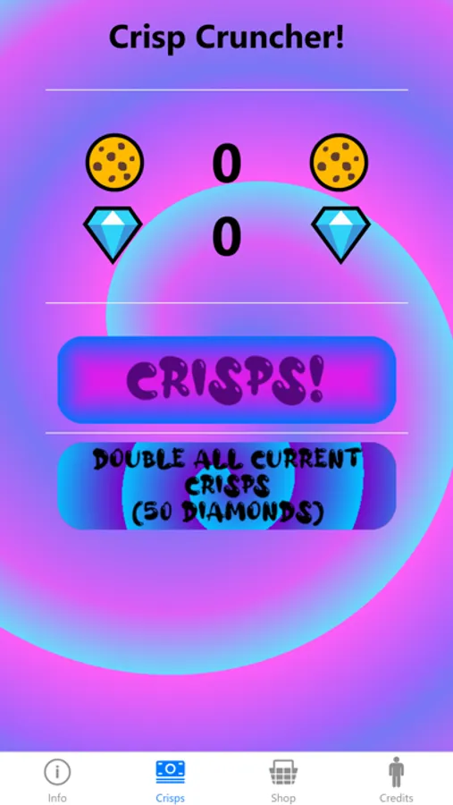 In this game, the only goal is to have the MOST Crisps at one point. Every time you press the CRISPS! button you get 1 (or more if you spend crisps on upgrades) crisps!