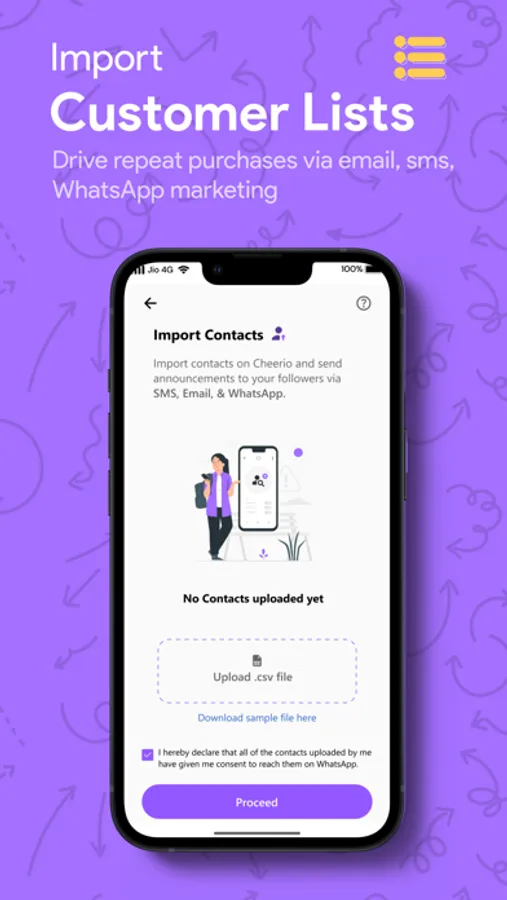 All you need to do is connect your database to Cheerio CRM or upload a customer excel/CSV file and you are ready to reach out to your customers.