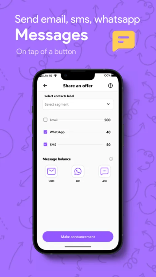 • Use Cheerio to keep in touch with your customers over email, sms & whatsApp.