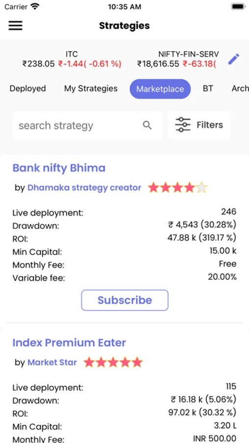 Tradetron is a no-code algo strategy builder and a marketplace. It allows you to create complex multi legged algo strategies, backtest them and then deploy in your own brokerage account or list it on the marketplace for a fee so that other subscribers can deploy them as well.