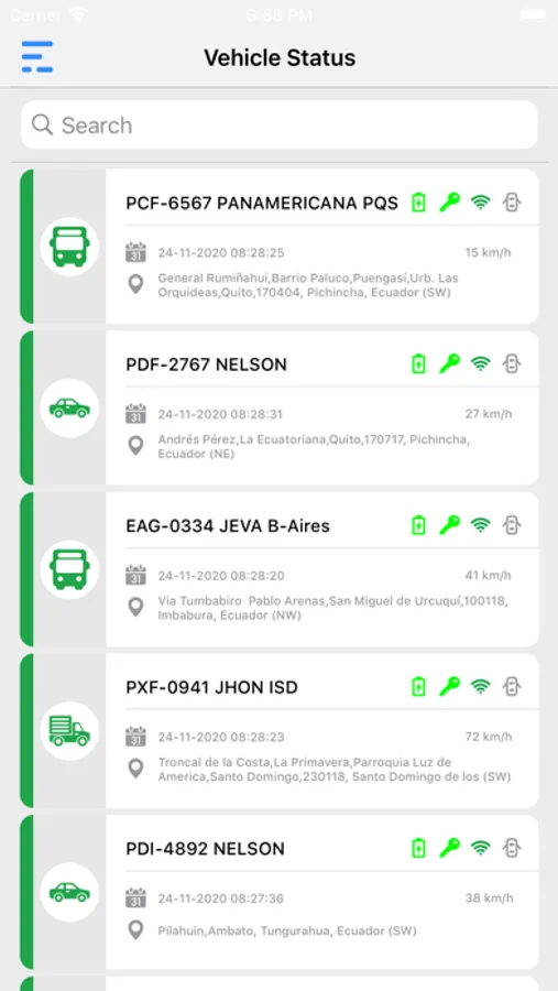 * Current status of vehicle like move, stop etc.