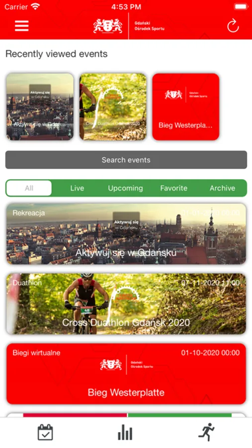 Aplikacja pomoże zaplanować swoją aktywność sportową, w szybki sposób przedstawi podstawowe informacje o zbliżających się zawodach, a także ułatwi rejestrację do najważniejszych wydarzeń sportowych w Gdańsku, takich jak Maraton Gdańsk, Triathlon Gdańsk czy Bieg Westerplatte, czy mniejszych, takich jak Cross Duathlon czy Gdańskie Biegi na Piątkę. W przypadku wyjątkowych imprez, takich jak Bieg Westerplatte Wirtualnie, pomoże zarejestrować swój udział i osiągnięty wynik, a także przesłać dane do organizatora.