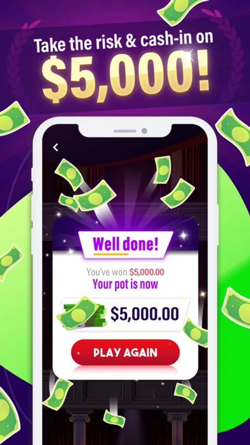The winnings won during your games are added to your pot. As soon as the jackpot hits $5, you can cash-in and claim your money!