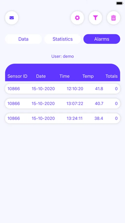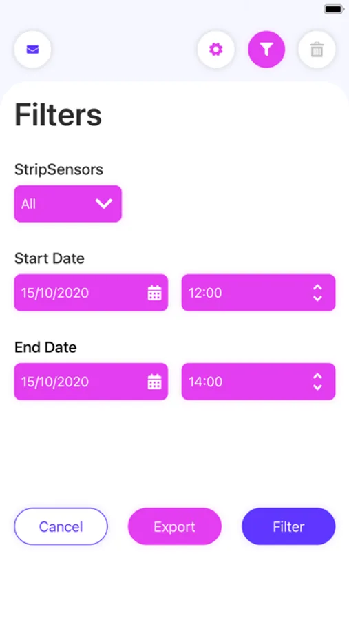The user can view all measured data gathered from the STRIPSENSOR® Devices that are registered to his account. This data includes: