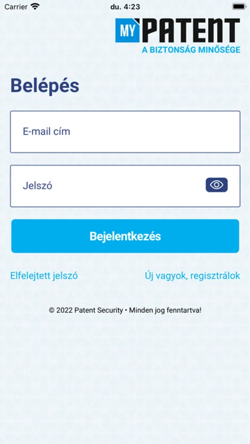 A myPatent használatához regisztráció szükséges, melyet mobilkészüléken vagy a www.mypatent.hu weboldalon végezhet el. Az e-mailes regisztrációt SMS-ben érkező hitelesítési kód teszi teljesen biztonságossá.