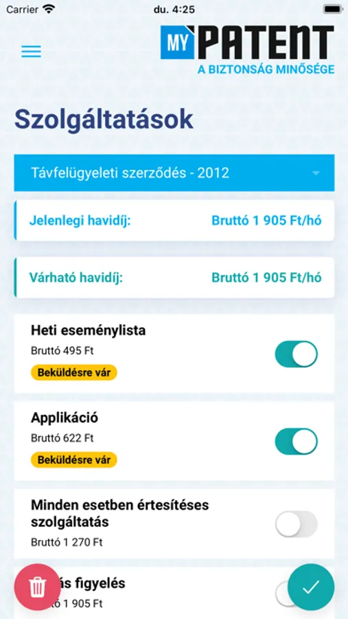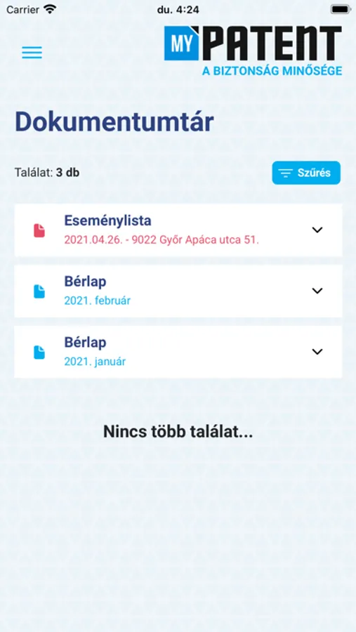 A myPatent kezelő felületén a patentos ügyfelek és dolgozók is megtalálhatják a számukra fontos adatokat, azok közül sokra módosítást kérhetnek, és látják azt, hogy van-e kifizetetlen számlájuk. Amennyiben igen, azt közvetlenül a Simplepay szolgáltatón keresztül kifizethetik.