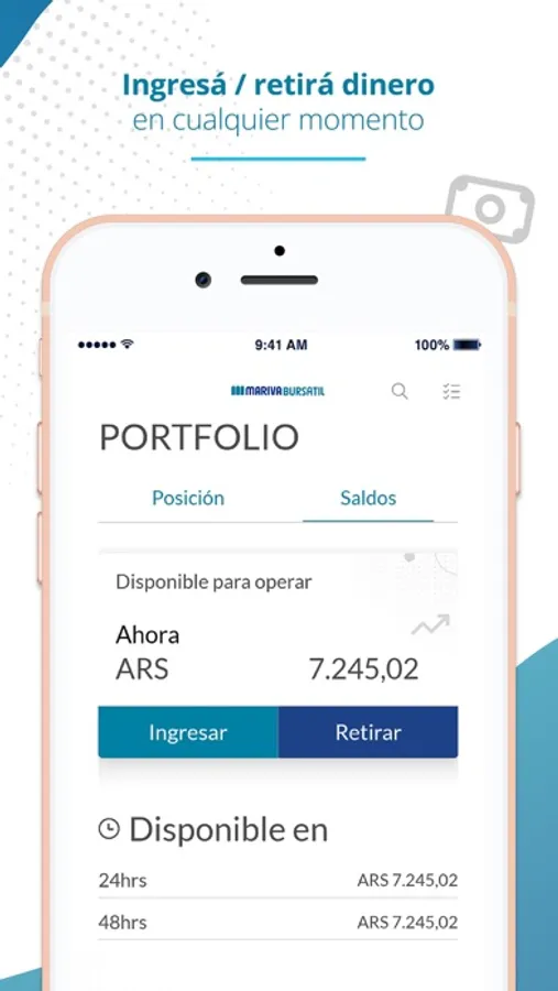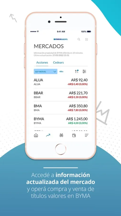 Mariva Trader es la app de Mariva Bursátil de onboarding gratuito y digital punta a punta; que permite a personas físicas operar, en el mercado secundario, compra y venta de títulos valores en BYMA.