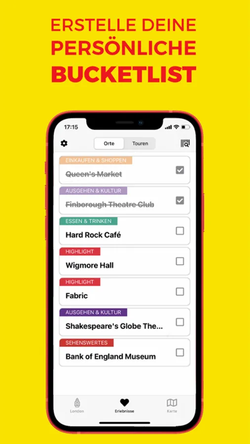 - Sammle und verwalte Deine Erlebnisse einfach per Klick in Deiner Bucket-List