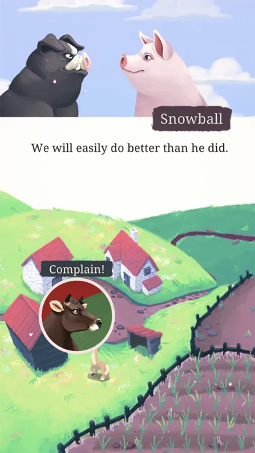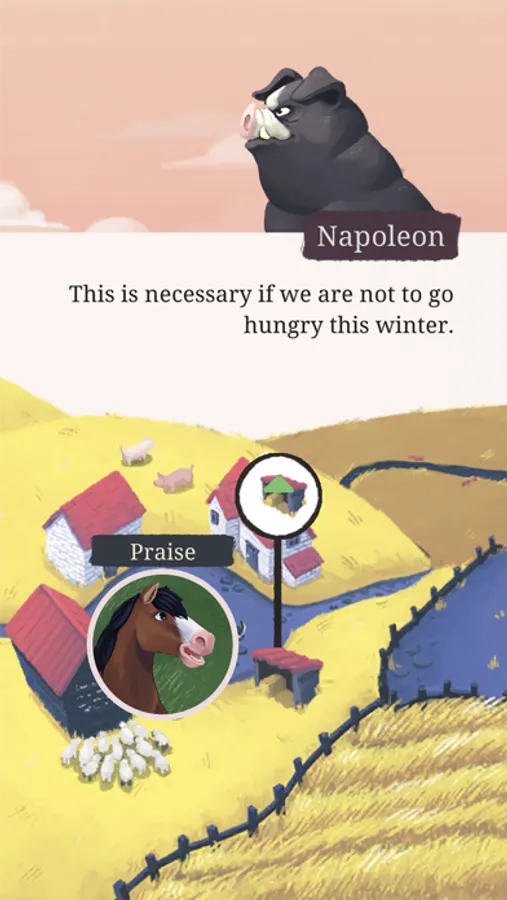 Orwell’s Animal Farm brings the familiar characters and situations to the medium of a game, and to the context of 2020. Depending on how you play, you may encounter situations very close to those in the book, or others influenced by events Orwell never lived to see.