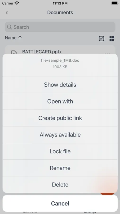 - View, open and share files directly from your device