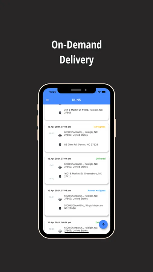 Today's society moves too fast to wait for things. Runner offers a solution that empowers customers with same-day delivery in their cities. Runner can be used to send someone flowers across town or support the growth of a catering company that wants to focus on making their creations. Take control and Run It!