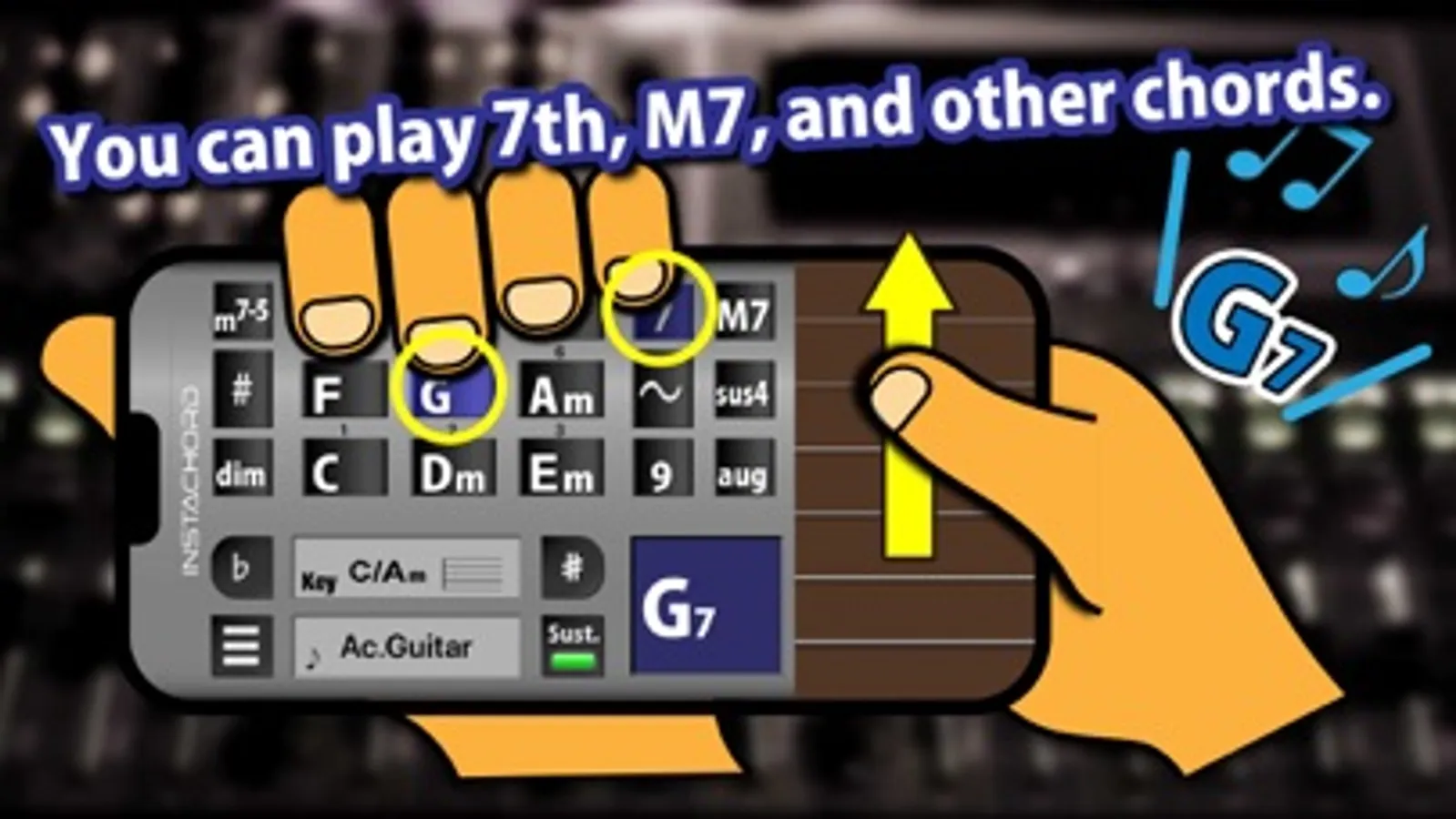 You can also play various chords by pressing the chord buttons (7, M7, sus4, etc.) at the same time.