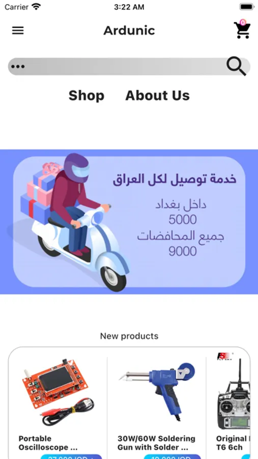 تطبيق تسوق عراقي للأنظمة المضمنة والاردوينو والحساسات والطابعات والالكترونيات