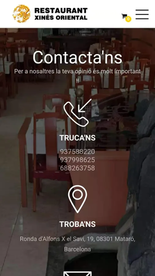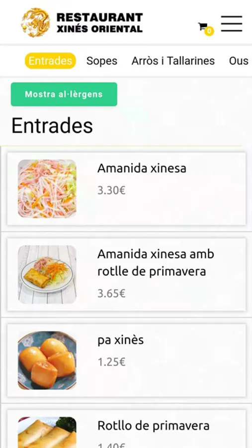 El restaurant xinès oriental de Mataró t'ofereix la més extensa varietat de menjar xinès. Escull entre els seus diferents plats d'amanides, sopes, arròs, tallarines, verdures, ous, marisc, llagostins, vedella, porc, pollastre, ànec i ... Molts més! Entra en la seva carta i descobreix les especialitats de la casa. Les més destacables, el kubak tres delícies i formigues pugen a l'arbre. Bon profit!