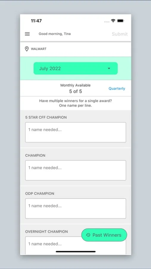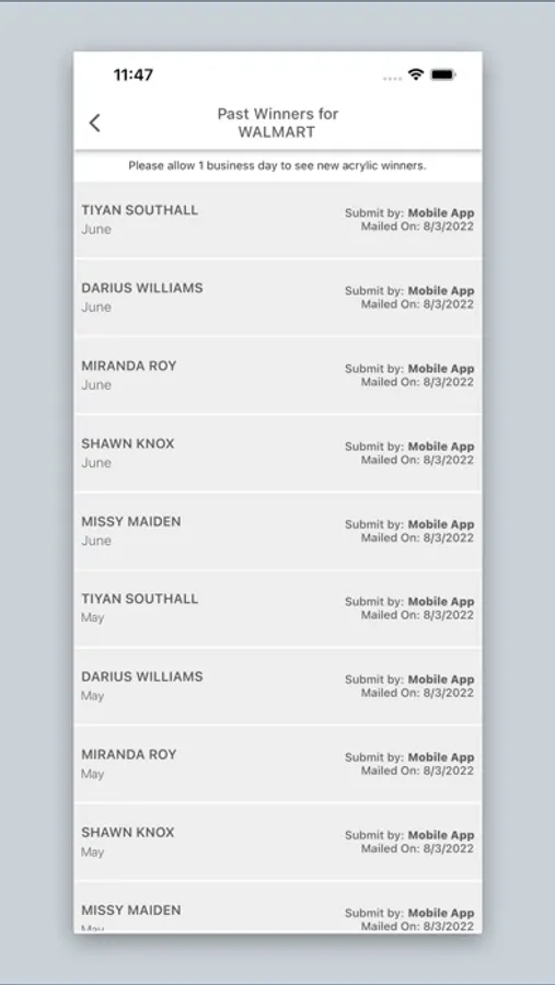 The MyEmployees App allows MyEmployee's clients to see past winners and submit new ones.