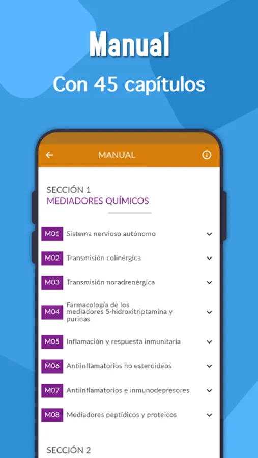 - Manual: 45 capítulos que engloban toda la información farmacológica actualizada.