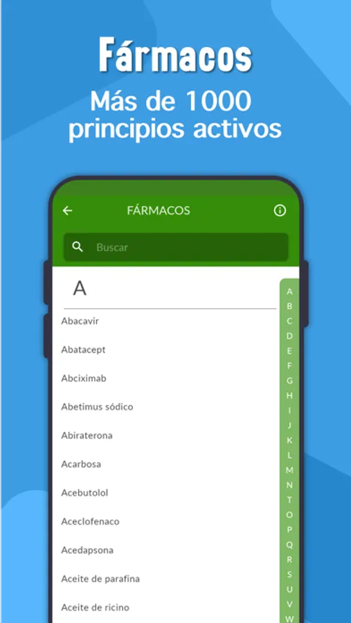 - Fármacos: 1086 principios activos empleados en la actualidad con su descripción completa.