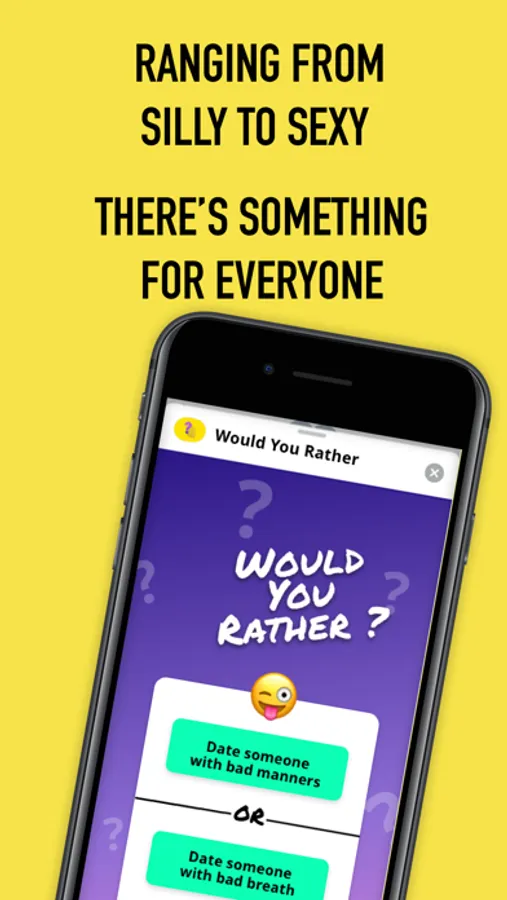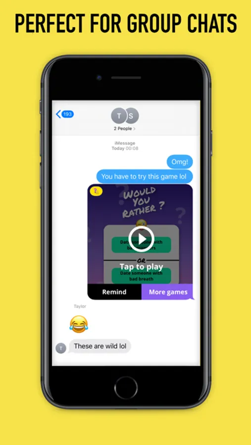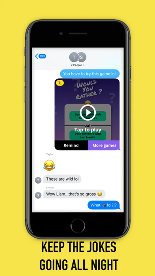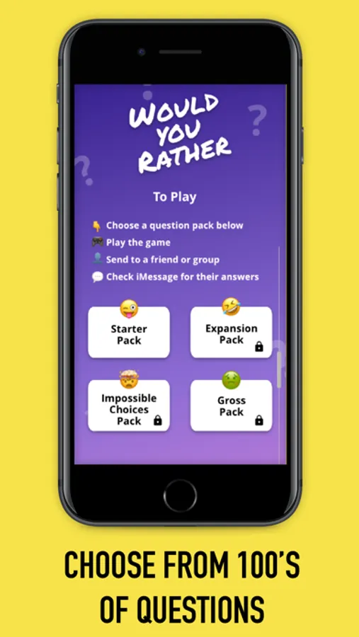 The first and ONLY “Would You Rather?” game built to play within iMessage with friends and family.