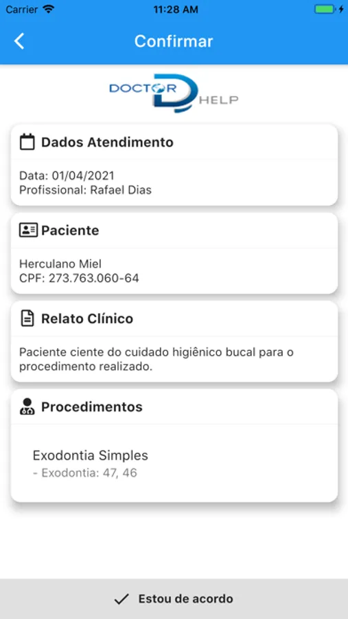 Com o aplicativo do Doctor Help será possivel coletar as assinaturas dos pacientes, seja em contrato, ao término da consulta ou até mesmo em uma ficha de Anamnese ou de Sequência clinica.