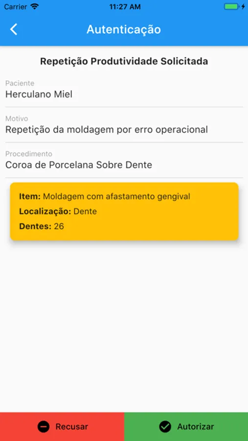 Aprove as solicitações de repetição dos dentistas e as cortesias concedidas. Também tire fotos diretamente do app e envie para o Prontuário Eletrônico do paciente.