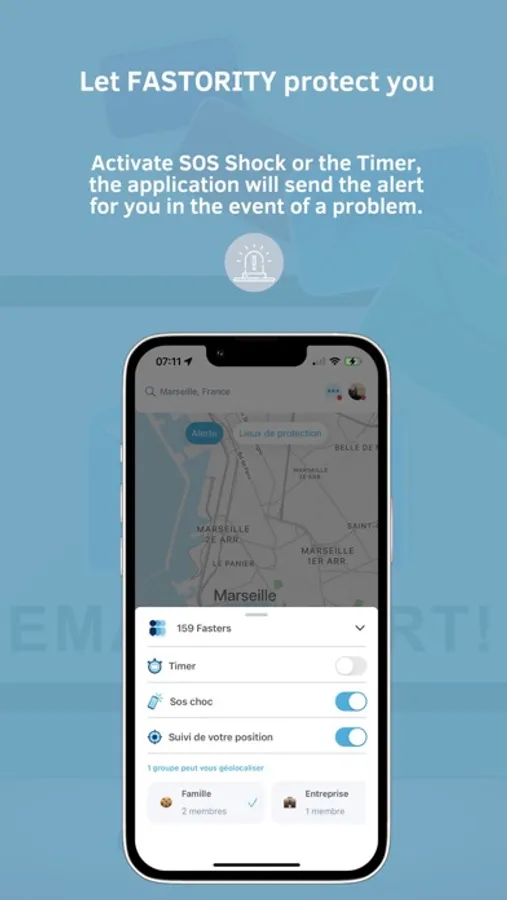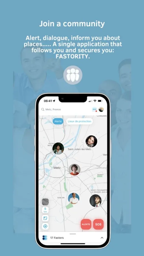 FAST warns you of any danger in your area and especially allows you to alert, if you are in danger yourself. FAST responds efficiently to this danger by triggering a voluntary rescue action from the Community as soon as it receives your alert point, whatever your position on the globe.