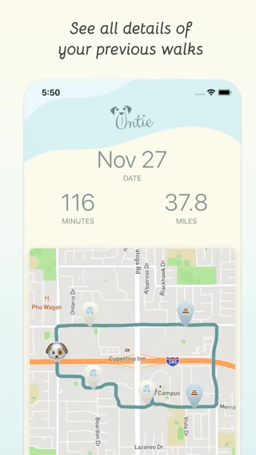 Track the daily walks with your dog in this simple and beautiful app. Record the route, distance and the duration of each walk to see all the exercise your puppy and you are getting each day.