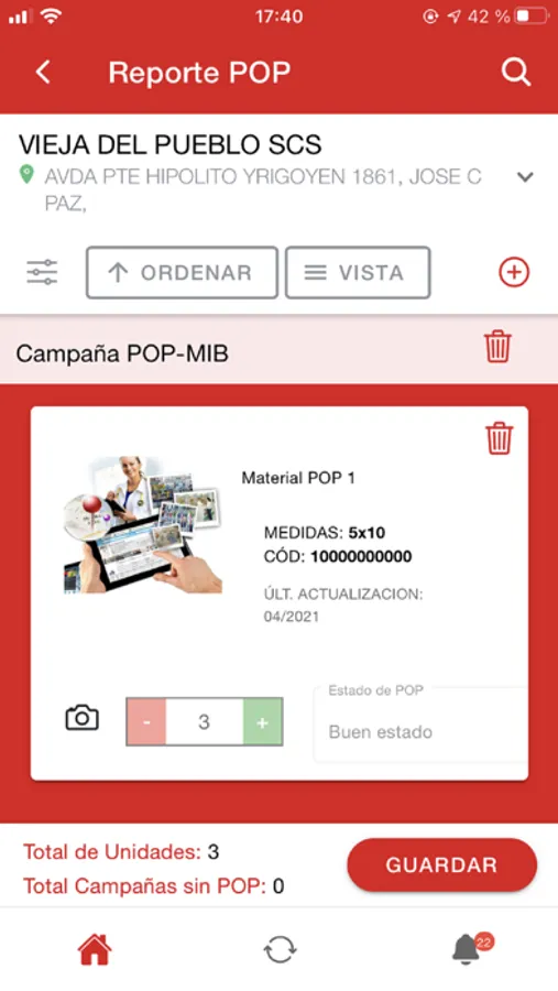 .- Captura de imágenes desde la aplicación para relevar los productos y material POP en tienda, asi como el frente de tienda.