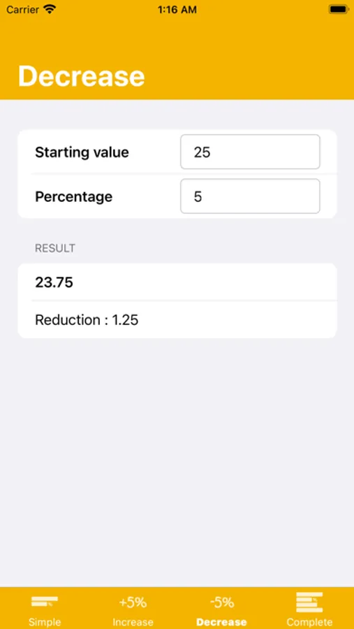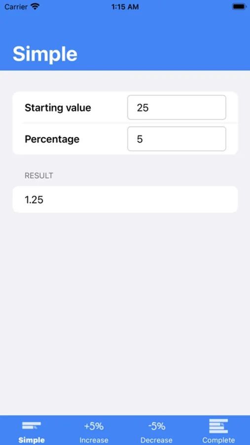- simple: calculation of a percentage