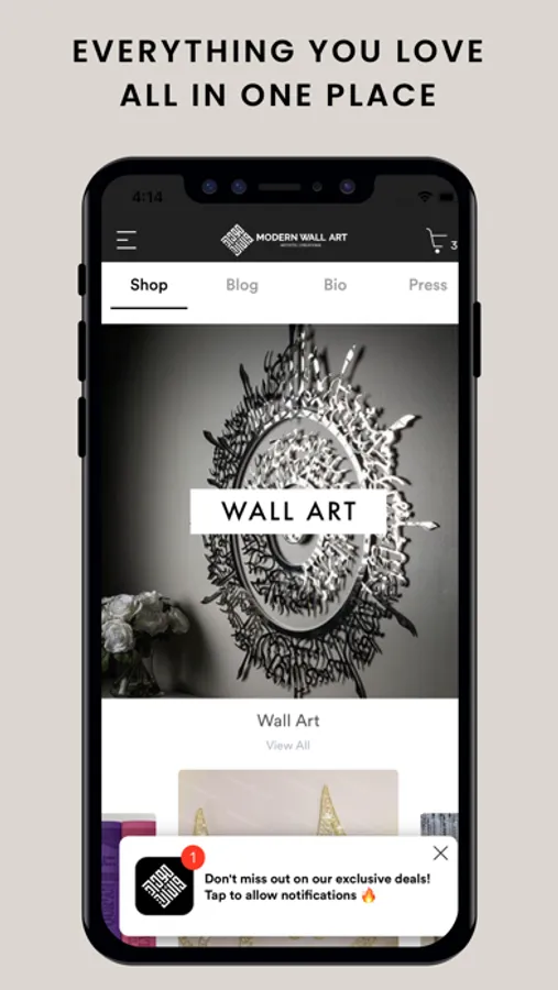 Syed Rahman, also known as Saif, officially started Modern Wall Art in 2014 with his father from their basement in Chicago. But Modern Wall Art has been successfully designing 3D decor and making stainless steel art and furniture for over 10 years. In 2014, Saif first started off with an Etsy and eBay page. Then next came a website, then a small studio space in Skokie, Illinois in 2016. In 2018 the actual gallery opened, then the location in Bridgeview opened in 2020.