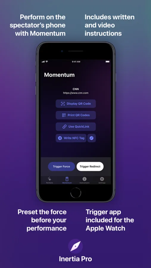 With multiple pairing methods available and a redirect process, Momentum is an extra purchase within Inertia Pro that will let you perform the same effect using your spectator's phone.